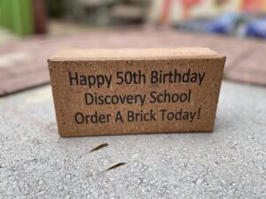 Celebrate the legacy of Discovery School with a commemorative brick in our newly laid Legacy Walkway. Honor your family, child, business, or express a special message with a custom engraving that will be a permanent part of the school’s history. Make your mark and support the school’s 50 years of educational excellence with this meaningful gesture.